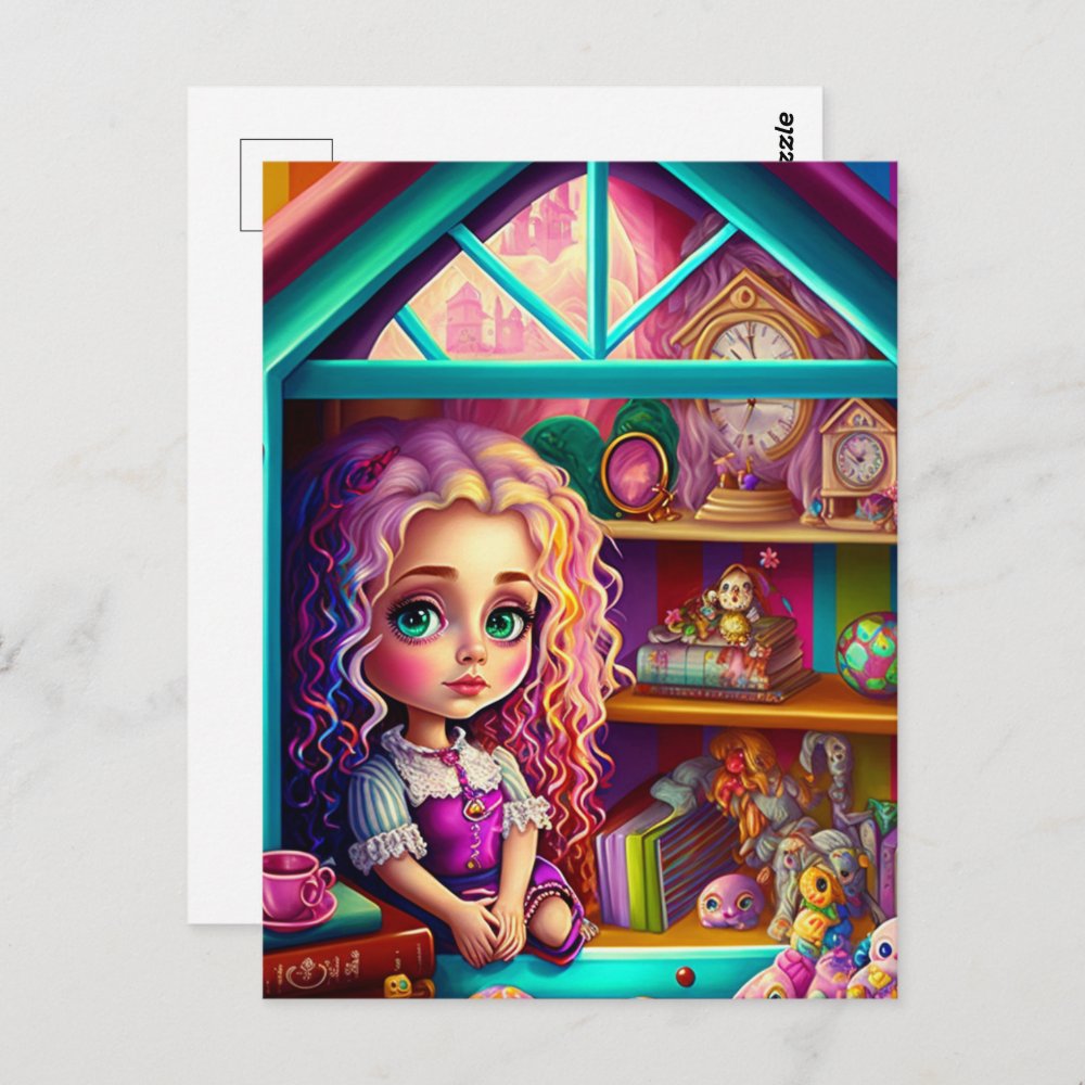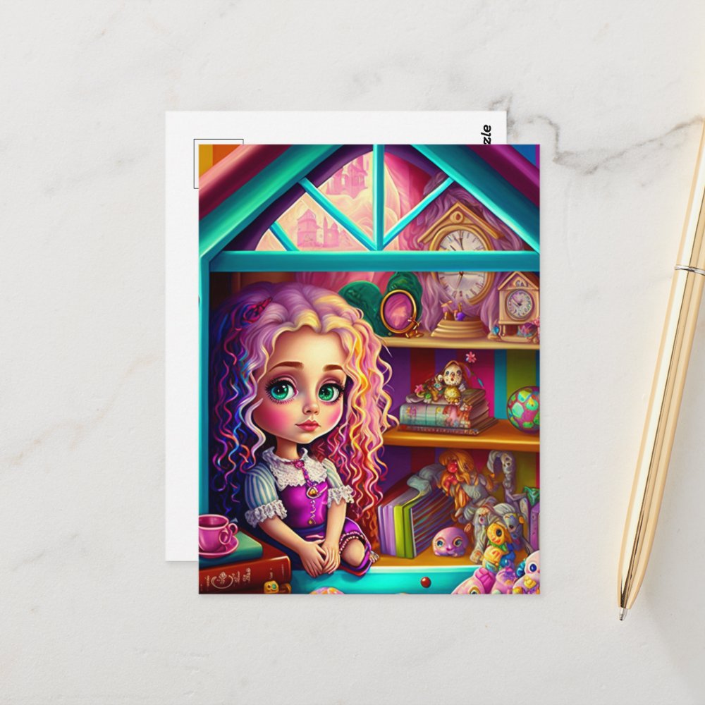 generativecontent, colorful, ai generated, fantasy, pink, blue, green, doll, dollhouse, cute