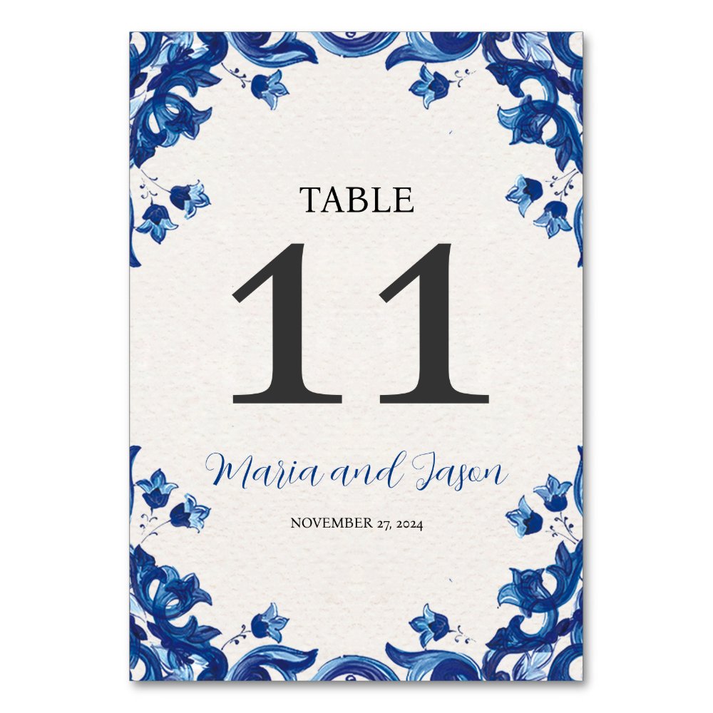 Mexican Blue Floral Elegant Fiesta Wedding Table Number