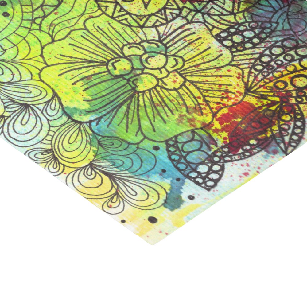 This tissue paper is a celebration of color and life, a testament to the beauty of nature captured in a delicate medium. It is adorned with an intricate floral pattern that dances across the surface, creating a mesmerizing spectacle. The dominant tones of yellow, green, red, and blue merge into each other, creating an abstract effect that is both vibrant and soothing. The transition from light at the top to darker shades at the bottom adds a sense of depth, making the tissue paper appear almost three-dimensional. Each flower is detailed with unique internal patterns, showcasing a variety of shapes and designs that add texture to the overall print. The leaves, too, are intricately designed, their patterns intertwining with the flowers in an elegant dance.