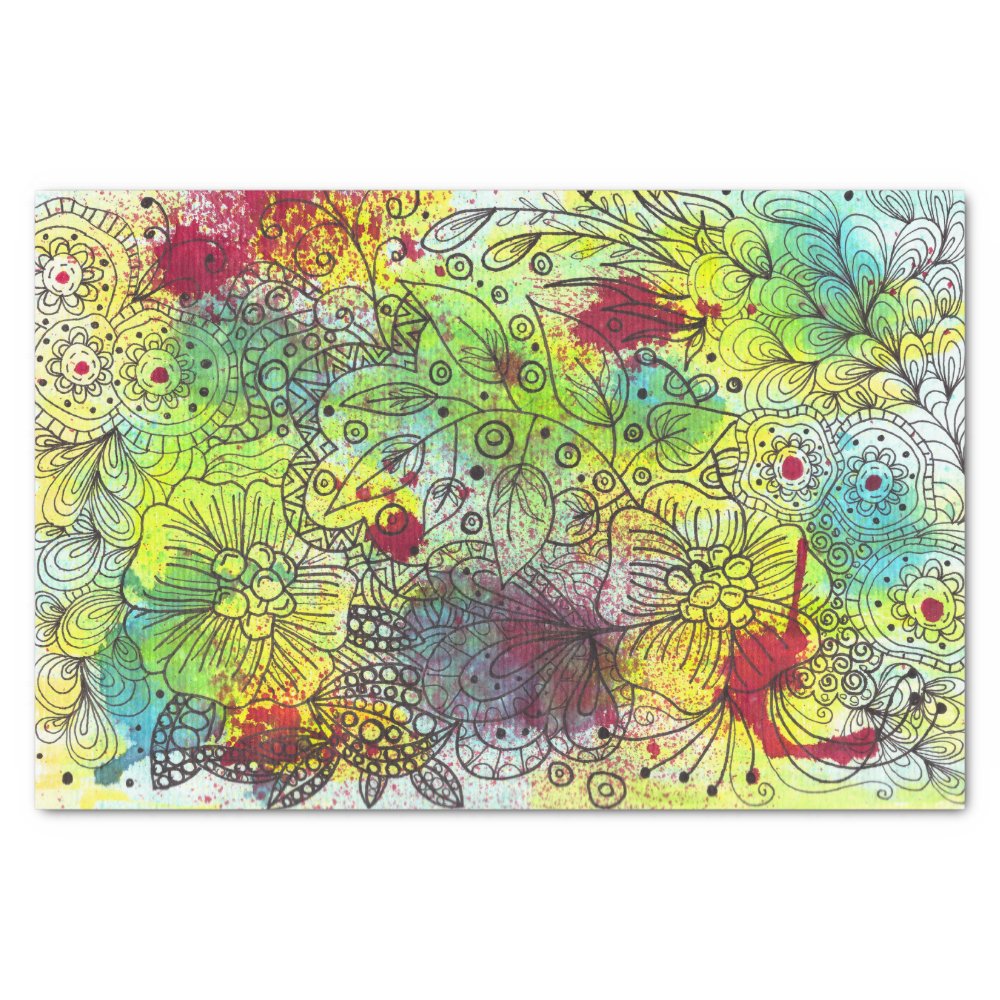 Colorful Line Art Ink and Watercolor Splashes Tissue Paper