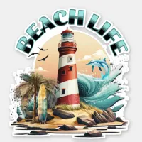 Abandoned Lighthouses on the Beach Colorful Sticker