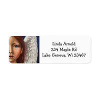 AI art depicting a sweet angel girl with white wings in oil paint style medium. Religious, Christmas or spiritual return address labels.