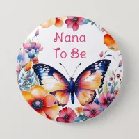 A pretty butterfly surrounded by pink, blue, orange and purple flowers watercolor illustration girl's baby shower personalized paper plates.