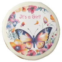 flowers, floral, butterfly, butterfly themed baby shower, girl's baby shower, purple pink blue and orange, baby shower, it's a girl, watercolor, illustration