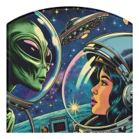 Personalized Bigfoot Christmas stocking. Bigfoot decorating Christmas trees in the forest with ornaments and Christmas lights. Moon shining through the trees. Add some sasquatch humor to your Christmas with these comic book style art.