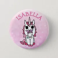 National Unicorn Day April 9th Holidays Button with cute purple unicorn with butterfly on her nose.