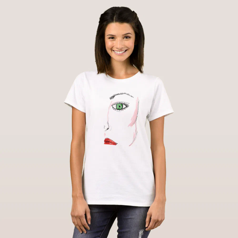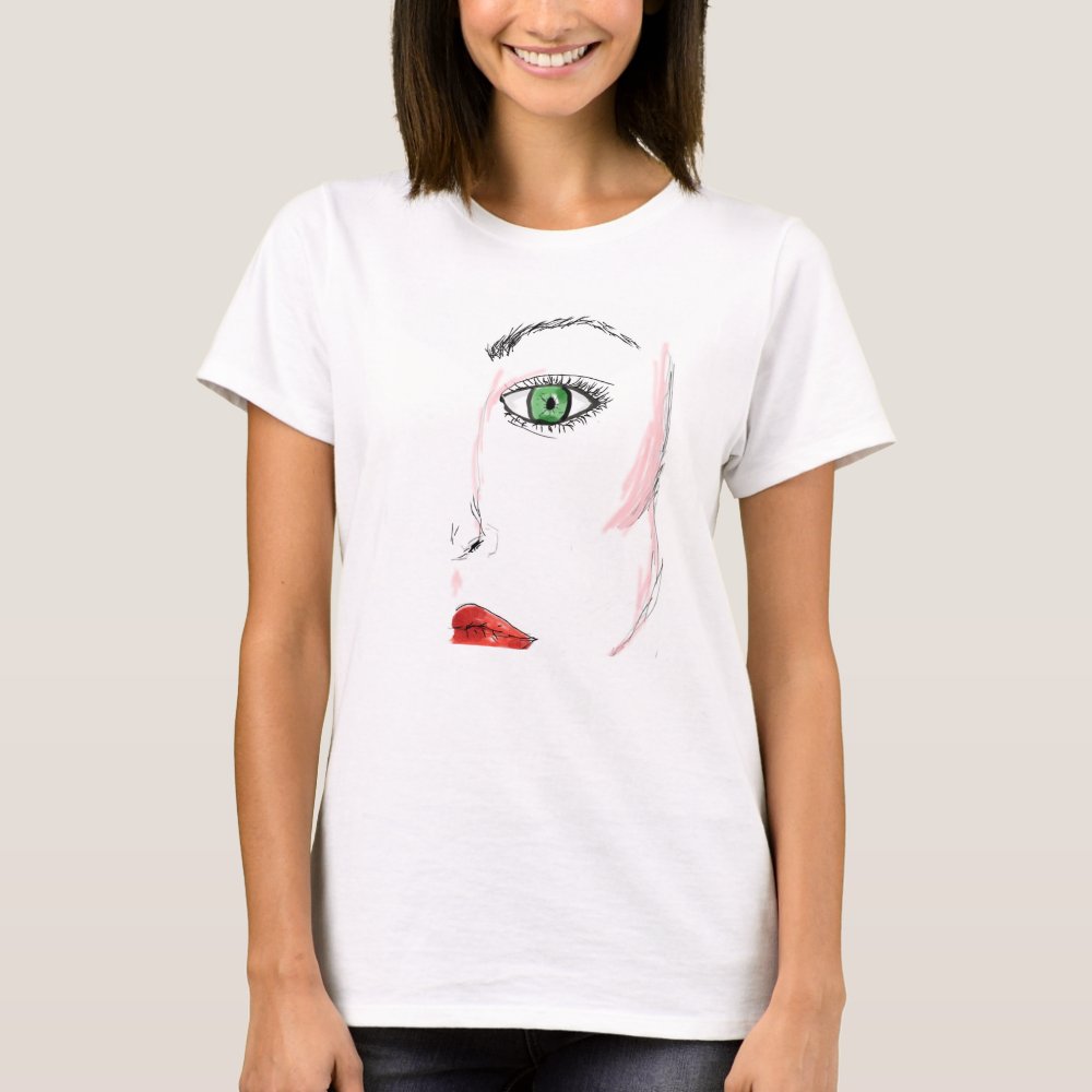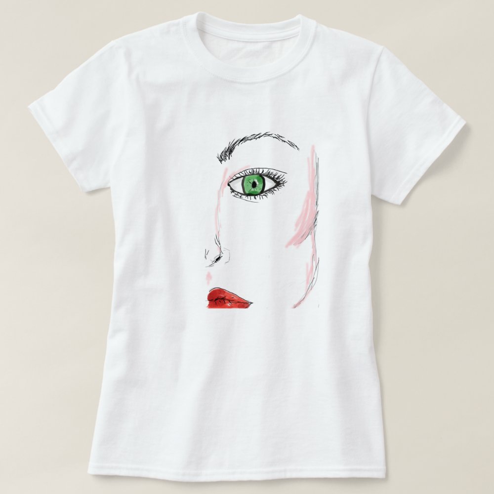 SKETCHED WOMAN GREEN EYES RED LIPS SHIRT