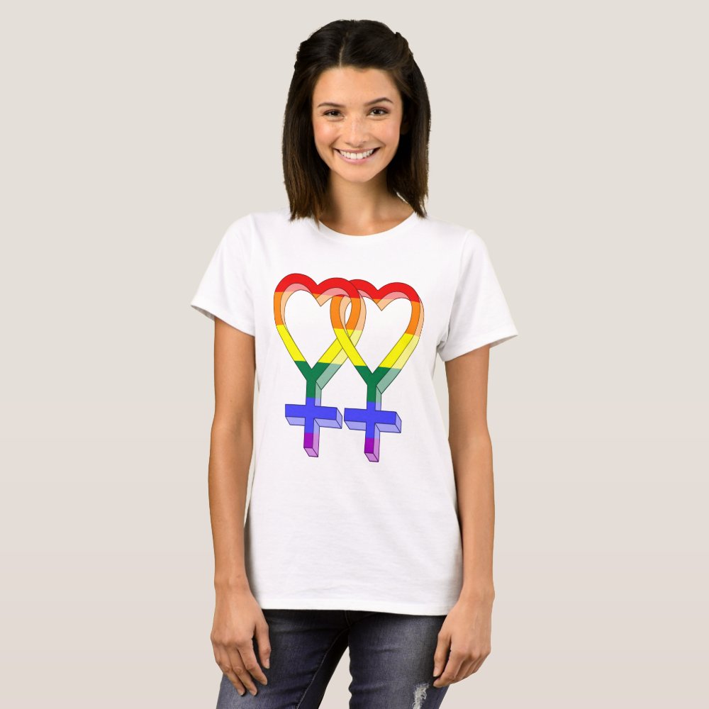 Female Couple Pride Symbols Rainbow Flag T-Shirt