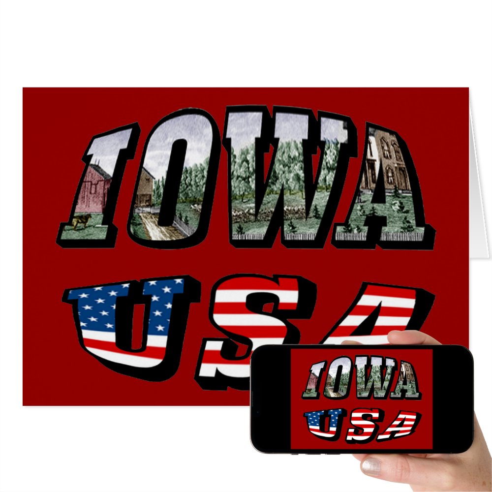 The word Iowa has photos with the wording of this great state. The USA text image has the American Flag. You can customize this product and transfer the image to another product. Iowa is the 26th largest in total area and the 31st most populous of the 50 US states, with a population of 3.19 million.