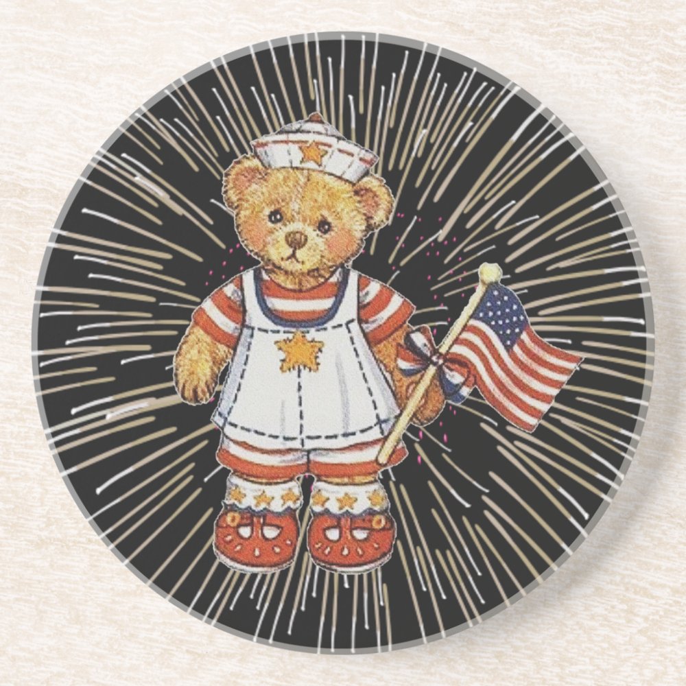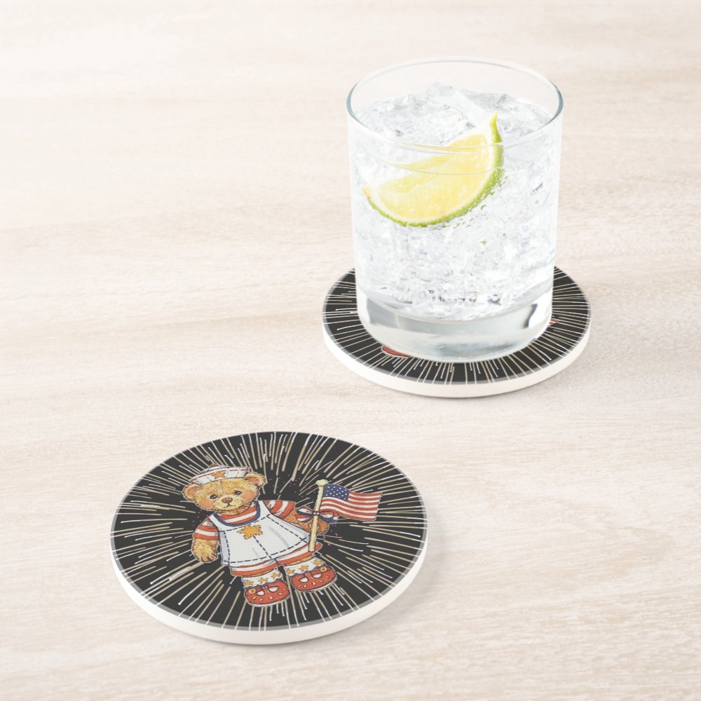 Vintage Nurse Bear with Modern White Fireworks Coaster