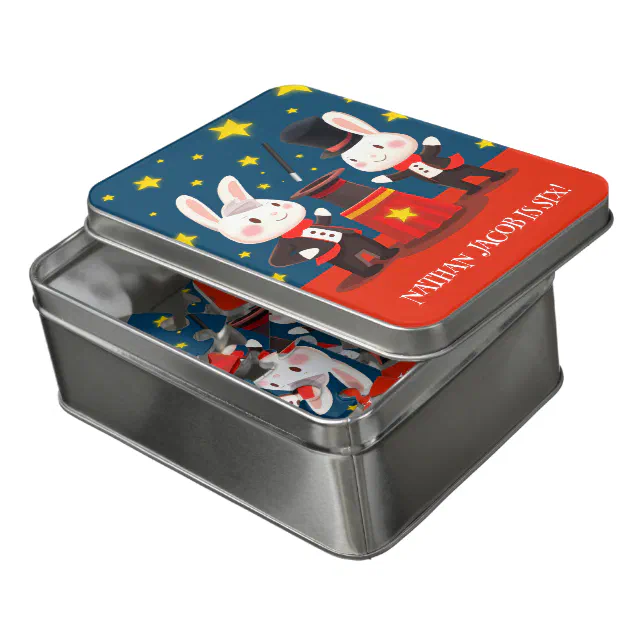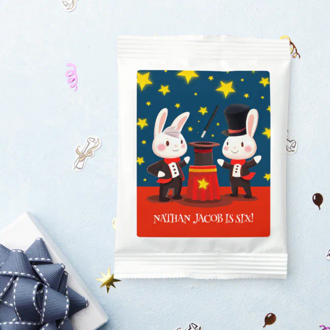 generativecontent, rabbits, magicians, funny, magic, stars, cute, top hats, tuxedoes, children's birthday can coolers